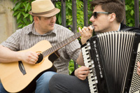 For “The Music of France, Vol. 1” we got in touch with Aleksander Grochocki and Patryk Walczak, or just Pat & Olo, who went to work and between them composed and delivered 13 delightful French tracks, ranging from the classical “musette” style, to passionate waltzes and foot-tapping Hot Club of France style gypsy jazz tracks. All original compositions, all recorded live in studio with Pat on accordeon, and with Aleksander on guitars, bass, percussion and “various”. It’s safe to say that we are très satisfaits with the results. Just take a listen to that album and you’ll be whisked off to Paris in a heartbeat.