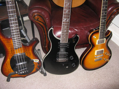 Traben Neo Ltd bass, PRS SE Clint Lowery and Dean Soltero Braziliaburst |