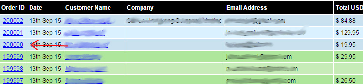 The screenshot shows the top of the order log, with the most recent orders on the top of the list, as it looked this morning. We’ve blurred the names and email addresses in the interest of privacy, but I can say that order #200,000 was placed by a gentleman from Finland, and he bought the 60-secs version of the track We Are Young composed by Evgeny Emelyanov.