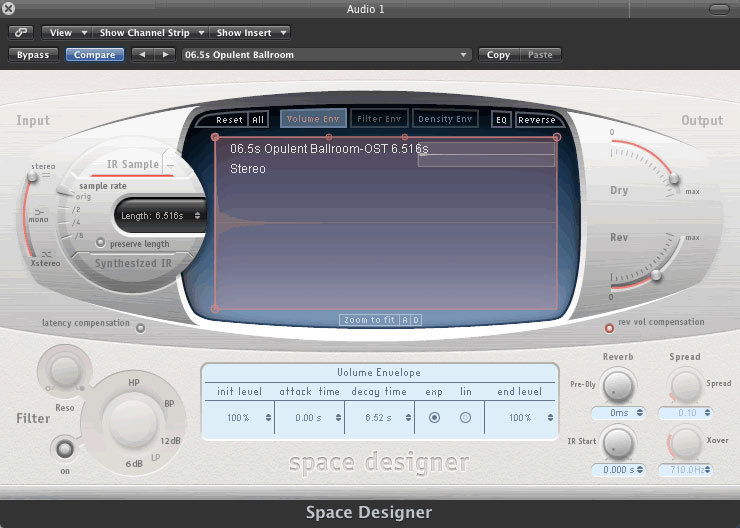 Space Designer comes with 1000 professional-quality impulse responses (IRs), covering all manner of indoor and outdoor spaces (everything from bathrooms and large halls to pine forests), as well as hundreds of responses from legendary hardware reverb and delay units that would otherwise cost thousands of pounds.